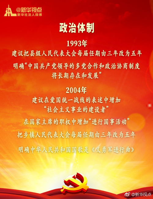 新華網(wǎng)北京1月20日電 黨的十九屆二中全會(huì)1月18日至19日在京召開(kāi),會(huì)議審議通過(guò)了《中共中央關(guān)于修改憲法部分內(nèi)容的建議》?,F(xiàn)行“八二憲法”公布實(shí)施后,根據(jù)我國(guó)改革開(kāi)放和社會(huì)主義現(xiàn)代化建設(shè)的實(shí)踐與發(fā)展,分別于1988年、1993年、1999年、2004年進(jìn)行了4次修改。每一次都是由黨中央向全國(guó)人大常委會(huì)提出憲法修改建議,經(jīng)過(guò)法定程序使黨的主張和人民意愿成為國(guó)家意志。(據(jù)新華視點(diǎn)微博)
