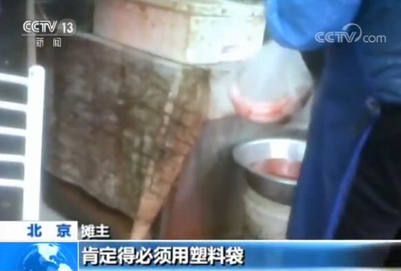 攤主:肯定得必須用塑料袋,要不怎么裝呀,一個袋還不行,有的魚要漏(水),就得兩個。