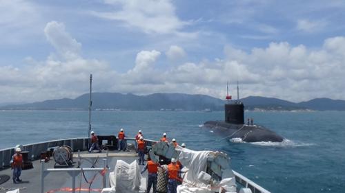 拖帶“受損潛艇”,同時對出水艇員進行“救治”