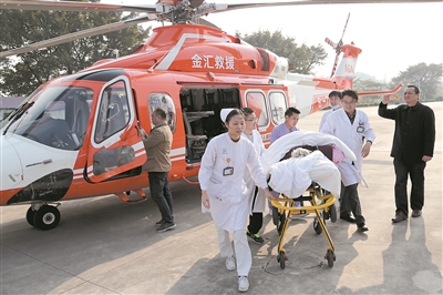接到通知之后,廣醫二院馬上組織醫療小組奔赴機場。昨天下午,飛機4時左右在直升機基地降落,一早等候在場的廣醫二院救護車幾乎無縫對接,半小時左右就將病人轉送到醫院。