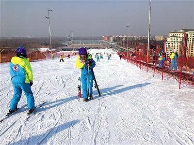 2月6日下午,位于大興區的龍熙滑雪場內,上百名滑雪者在此滑行。新京報記者注意到,許多滑雪初學者在雪道下方的緩沖區域內練習,一旁練習道上的滑雪者寥寥無幾。“在哪兒都一樣。”一名在緩沖區域雪道上逆行、自稱沒有任何滑雪基礎的滑雪者稱。