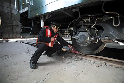 昨日,趙志剛給臨客車廂固定鐵鞋,防止車輛溜逸。