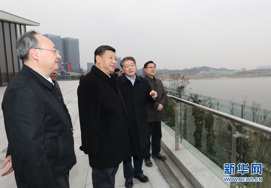 當天下午,習近平從西昌前往成都。一下飛機,便來到天府新區考察。天府新區于2014年10月獲批為國家級新區。習近平結合視頻、沙盤、展板,詳細了解興隆湖生態治理成果、沿湖產業規劃布局、中國(四川)自由貿易試驗區建設情況。他指出,天府新區是“一帶一路”建設和長江經濟帶發展的重要節點,一定要規劃好建設好,特別是要突出公園城市特點,把生態價值考慮進去,努力打造新的增長極,建設內陸開放經濟高地。