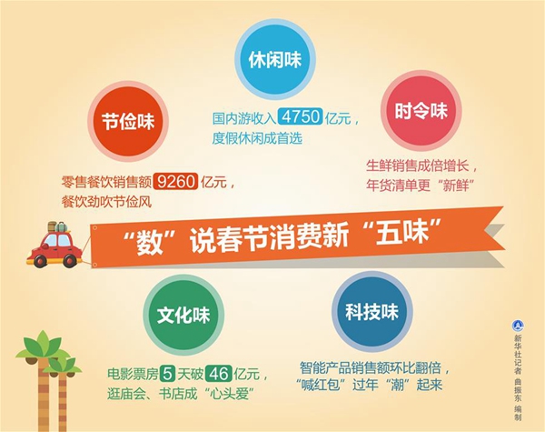 圖表:“數”說春節消費新“五味” 新華社記者 曲振東 編制
