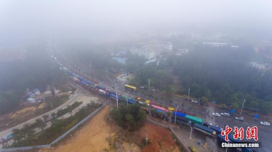 資料圖:近日瓊州海峽因大霧一度封航。 中新社記者 駱云飛 攝