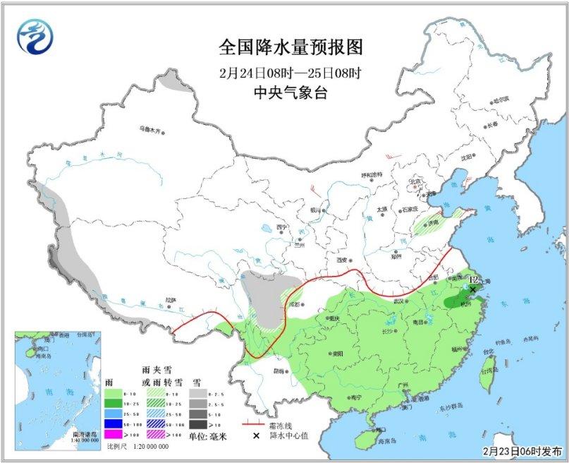 23日夜間至24日,西南地區(qū)東部、江漢南部、江淮南部、江南、華南等地將有一次小到中雨的降水過程。