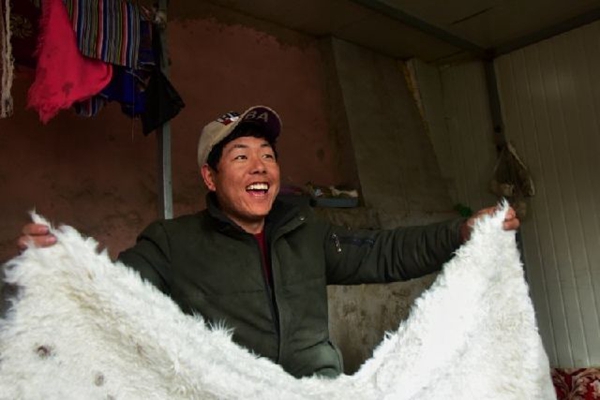 松多村鑲嵌在縣城城郊一條干涸的河谷上。這里干旱少雨,風吹黃土漫天,只能種些青稞、土豆為生。“那時我們家8口人,住的是土坯房,吃的是洋芋,人均耕地面積不足2畝,一年種的莊稼連來年買肥料的錢都不夠。”小學還沒畢業(yè),旦增加就輟學在家,重復著父輩的生活,不到20歲就結婚生子,同樣靠種地維持生計,日子卻越發(fā)捉襟見肘。