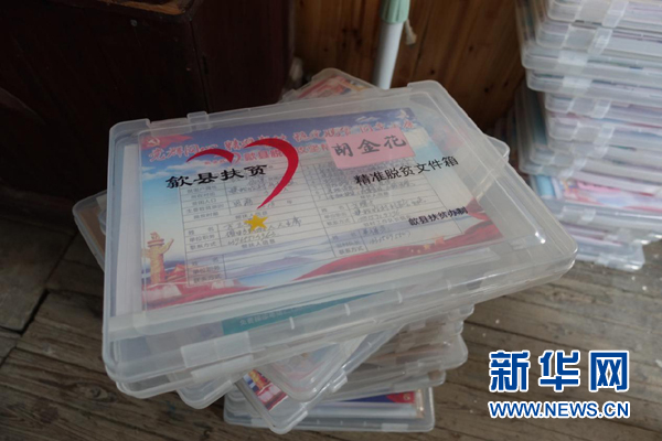 村委辦公室中的“精準脫貧文件箱”,扶貧干部每月走訪時需攜帶并記錄。新華網 卓越 攝