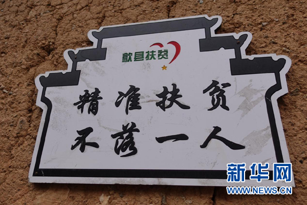 貼在村道旁的“精準扶貧”標語。新華網 卓越 攝