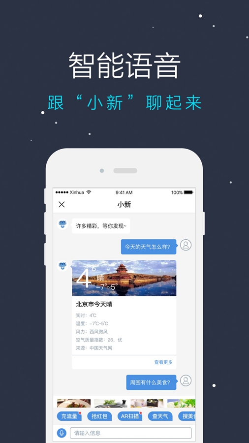 據悉,新華社客戶端還將進一步向便民服務拓展,并接入智能語音交互,用戶可隨時語音呼叫“小新”,有問必答。