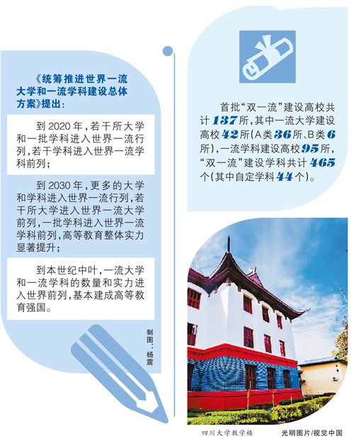 自2015年中央全面深化改革領(lǐng)導(dǎo)小組會(huì)議審議通過(guò)《統(tǒng)籌推進(jìn)世界一流大學(xué)和一流學(xué)科建設(shè)總體方案》以來(lái),“雙一流”一直是牽動(dòng)眾多高校目光的關(guān)鍵詞:2017年9月,“雙一流”建設(shè)名單公布;2017年歲末,眾多入選高校紛紛公布自己的一流大學(xué)建設(shè)方案,“雙一流”建設(shè)正式破土動(dòng)工;今年政府工作報(bào)告提出,以經(jīng)濟(jì)社會(huì)發(fā)展需要為導(dǎo)向,優(yōu)化高等教育結(jié)構(gòu),加快“雙一流”建設(shè),支持中西部建設(shè)有特色、高水平大學(xué)。