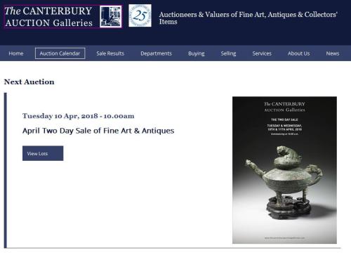 記者注意到,這件“虎鎣”出現(xiàn)在英國坎特伯雷拍賣廊拍賣日程表中。網(wǎng)頁顯示,這場拍賣會將于4月在當(dāng)?shù)亻_拍。