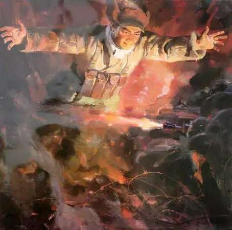 陣地已毀,彈已盡,援已絕。優勢的敵軍正踩著被鋼與火耕耘了一遍又一遍的陣地,就要上來了。他或許會很平靜地掏出了摯愛的鋼筆,擰開筆帽,在一本筆記本上寫了些什么。時間是那么有限,他或許還沒寫完,還沒有蓋上筆帽,一顆子彈或者一塊彈片令他失去意識,從此與陣地化為一體。
