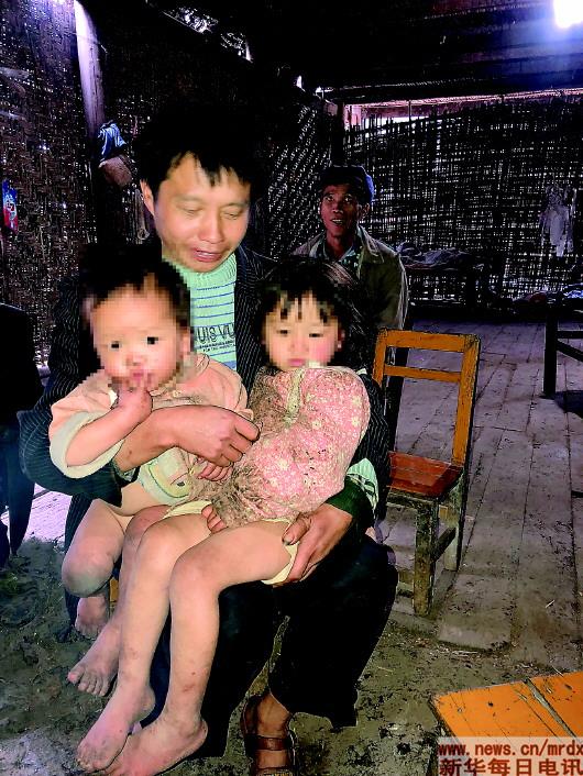 他看起來并不悲觀,他將2歲的兒子和6歲的女兒抱在懷中,孩子光著的腿已凍得通紅。冬日寒風凜冽,我們擔心孩子會凍著,他卻擺著手說:不冷、不冷。