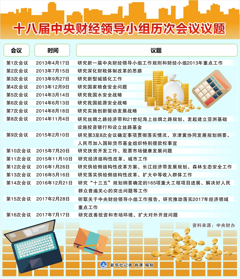 圖表:十八屆中央財(cái)經(jīng)領(lǐng)導(dǎo)小組歷次會(huì)議議題 新華社記者 肖瀟 編制