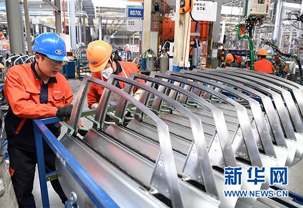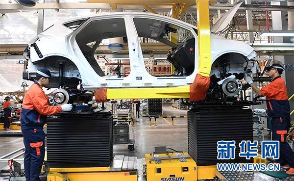 3月27日,工人們在浙江臨海的吉利汽車生產車間工作。新華社記者 殷博古 攝