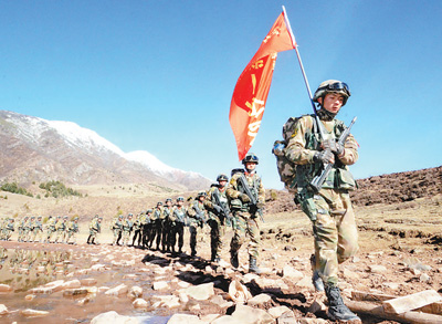 昌都是反分裂斗爭的前沿和主陣地。作為支隊全域式機動處置力量,要想成為執勤處突的“尖刀”,就必須付出極大的努力。中隊原隊長趙治國說:“按照源于實戰、高于實戰、嚴于實戰的要求,中隊始終堅持每月一次搏擊對抗、應用射擊、長途奔襲,每周三次武裝越野、搶占山頭、障礙訓練,每人每天100個俯臥撐、100個仰臥起坐、100個馬步沖拳、100個深蹲起立、100個立位體前屈,全面錘煉官兵的反恐作戰技能。”