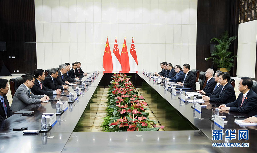 習近平指出,中新關系發展同中國改革開放息息相關。當前,中國特色社會主義進入新時代,新加坡正在實施“未來經濟發展戰略”。雙方要結合新形勢新特點,對雙邊關系和務實合作作出新的戰略謀劃和頂層設計。雙方要推進政府間大項目合作。要加強“一帶一路”框架內合作,繼續打造好兩國共建的“南向通道”,將“一帶”和“一路”更好連接起來。中方愿同包括新方在內東盟國家加強溝通協調,實現“一帶一路”倡議同東盟發展規劃更好對接,構建更為緊密的中國-東盟命運共同體,希望新加坡發揮積極建設性作用。