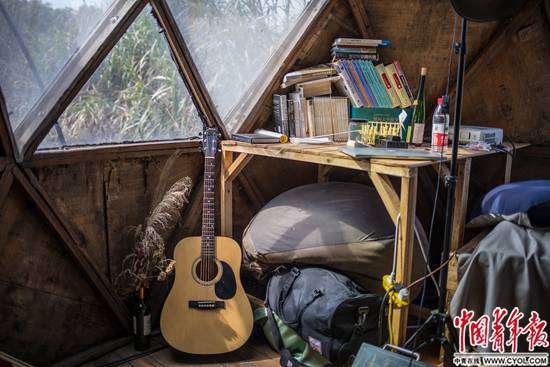 早在2011年,面對(duì)城市的高房?jī)r(jià)和霧霾,22歲的唐冠華就開(kāi)始思考一種主流之外的生活方式。很快,從事廣告設(shè)計(jì)和理財(cái)分析工作的唐冠華和邢振先后離職,在青島嶗山的山林中建立了“自給自足實(shí)驗(yàn)室”,盡量不使用與不可持續(xù)能源相關(guān)的工具,獨(dú)立生活了5年。