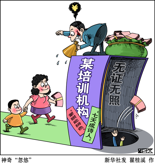 近年來(lái),功利教育觀大行其道,培訓(xùn)市場(chǎng)魚龍混雜,推波助瀾。不少家長(zhǎng)架不住廣告“忽悠”,老師“洗腦”,報(bào)班花費(fèi)成千上萬(wàn),可到頭來(lái)沒(méi)讓孩子練就“開掛”本領(lǐng),反被部分培訓(xùn)機(jī)構(gòu)坑錢、坑娃、坑智商。種種洗腦式營(yíng)銷,消費(fèi)家長(zhǎng)們的焦慮,加劇拔苗助長(zhǎng)的功利心,違背了教育育人為本的初心。