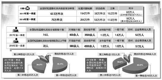 2018年第一季度全國紀(jì)檢監(jiān)察機(jī)關(guān)處分9.6萬人 包括22名省部級及以上干部