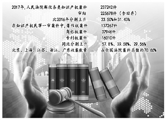 針對這些情況,人民法院在充分發揮司法保護主導作用,加大保護力度的同時,加強知識產權審判領域改革創新,除設立3家知識產權法院外,還積極探索設立跨區域管轄的知識產權專門審判機構。