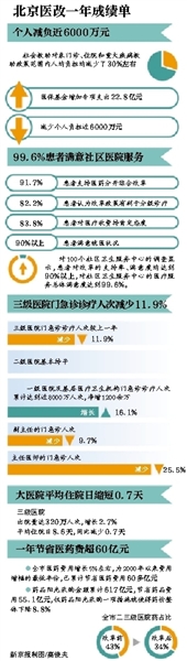 北京市實施醫藥分開綜合改革一年來,三級醫院門急診診療人次較上一年減少11.9%,大醫院“看專家難”問題得到緩解,一些普通病常見病已逐步分流到基層機構。