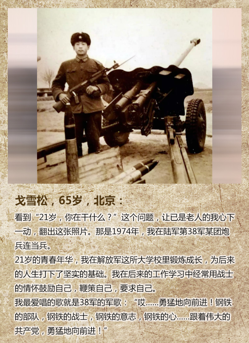 #21歲的我#【電影也拍不出來的芳華!爸媽爺奶輩的21歲原來是這樣的】21歲,你在干什么?問題一發出,不僅有大批年輕人來分享故事,就連他們的爸媽爺奶輩也坐不住了!來看看他們的21歲,綻放過怎樣的芳華?他們的21歲,奉獻青春保家衛國,這是不是讓人熱血沸騰?21歲的故事,我們繼續等你分享!