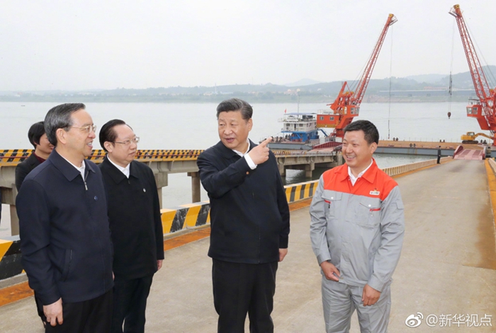 新華網(wǎng)北京4月24日電? 24日上午,習(xí)近平從北京直飛湖北宜昌。一下飛機便前往長江沿岸考察調(diào)研長江生態(tài)環(huán)境修復(fù)工作,把脈長江經(jīng)濟帶建設(shè)。(據(jù)新華社“新華視點”微博報道 文字:霍小光 攝影:鞠鵬)