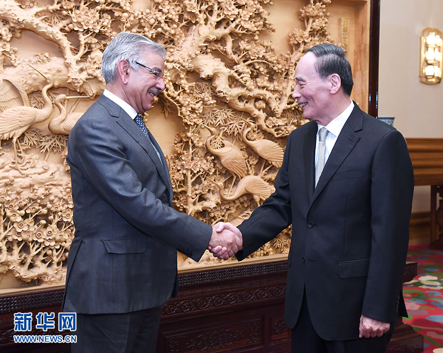 王岐山表示,習近平新時代中國特色社會主義思想是中國黨和國家發展的指導思想,我們將統籌推進“五位一體”總體布局,堅定“四個自信”,保持冷靜清醒,實現建設社會主義現代化國家的宏偉藍圖。構建人類命運共同體符合時代潮流,巴基斯坦是中國全天候戰略合作伙伴,中巴關系應走在建設人類命運共同體前列。中方將繼續將巴基斯坦作為周邊外交的優先方向,推動兩國關系發展到新高度。
