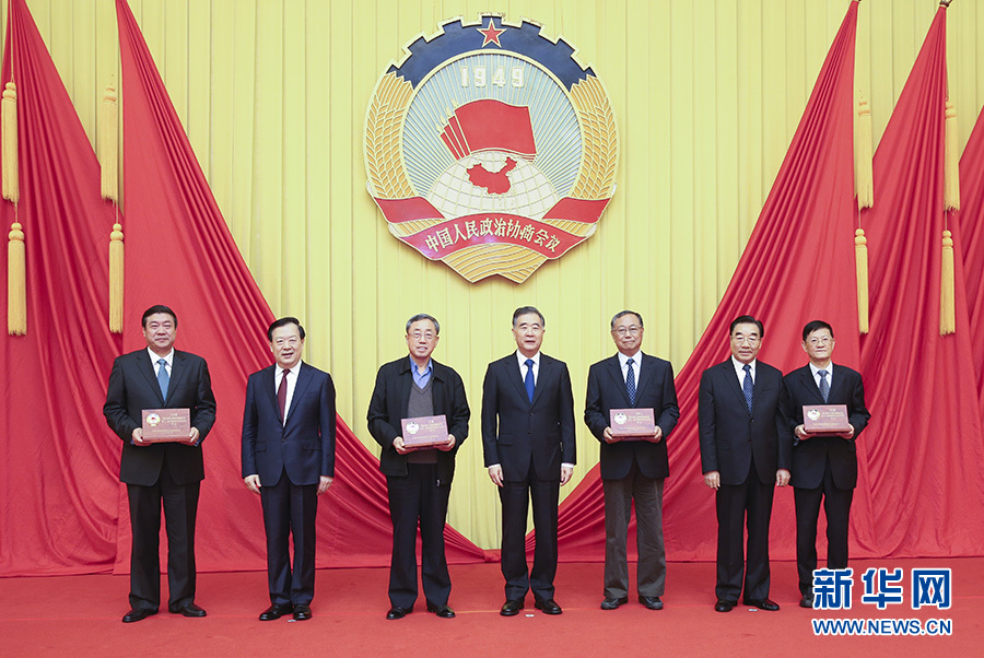 全國政協(xié)向不再連任的在京十二屆全國政協(xié)常委頒發(fā)紀念證牌