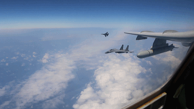 26日上午,人民空軍多型殲擊機、多型預警機、多型偵察機和轟—6K戰機,從空軍多個機場起飛,成體系開展海上方向實戰化軍事訓練。轟—6K等多型戰機編隊飛越宮古海峽和巴士海峽,實施了“繞島巡航”訓練課題。