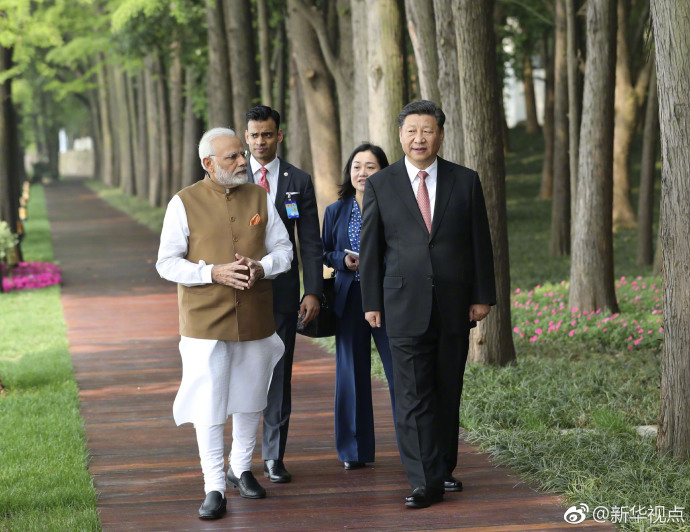 新華網北京4月28日電 28日上午,國家主席習近平同印度總理莫迪在煙波浩渺、風景秀麗的武漢東湖邊散步。習近平和莫迪在輕松友好的氣氛中極目楚天、閑庭信步,就中印關系和共同關心的國際和地區問題交換意見。(文字:李忠發 攝影:龐興雷 據新華社“新華視點”微博報道) ????