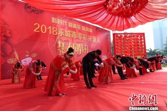 5月4日是五四青年節(jié),當(dāng)日上午,以“新時(shí)代、新青年、新風(fēng)尚”為主題的河南永城市2018“零彩禮”新人集體婚禮在該市人民廣場(chǎng)隆重舉行。來(lái)自全市的18對(duì)新人以“零彩禮”集體婚禮的形式步入幸福的婚姻殿堂,致敬青春。