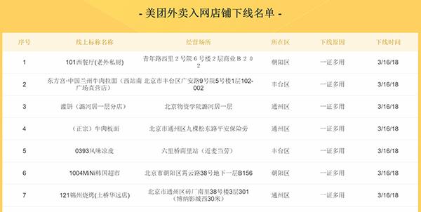 在“安全承諾”公示旁邊附有“下線名單公示專欄”,點開即三大平臺的“因食品安全問題下線商戶名單”。食藥監(jiān)管部門查處的、消費者投訴舉報后核實的、平臺自查出來的商戶名單都將放入這個欄目,隨時更新。下線名單的格式項目包括商戶名稱、經(jīng)營場所、所屬區(qū)、下線原因以及下線時間。
