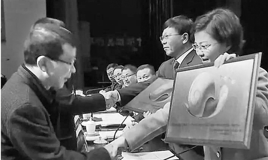 3月20日,縉云縣委書(shū)記楊秀清、縣長(zhǎng)李一波(右一)給“蝸牛獎(jiǎng)”得主頒獎(jiǎng)。(視頻截圖)