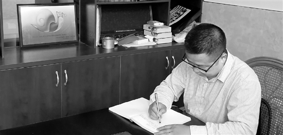陳毅力把“蝸牛獎”放在了辦公室顯眼的位置。