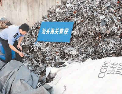5月22日,汕頭海關(guān)開展代號(hào)“1801”的打擊固體廢物走私“藍(lán)天”專項(xiàng)行動(dòng),摧毀一個(gè)走私廢五金等固體廢物入境的犯罪網(wǎng)絡(luò)。經(jīng)初步查證,該案涉及固體廢物約20萬(wàn)噸,案值約22億元人民幣。袁國(guó)宏攝(新華社發(fā))
