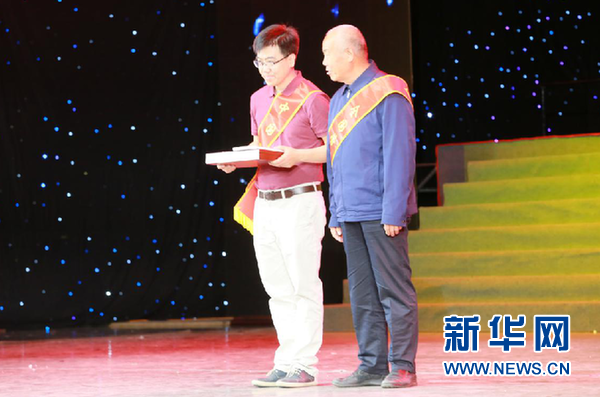 嘉賓為張延波(左)頒發道德傳家寶。 新華網 楊喜龍攝