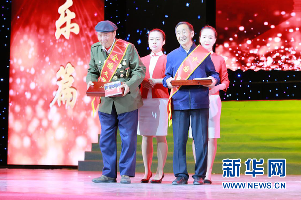 嘉賓為紀云鵬(左)頒發道德傳家寶。 新華網 楊喜龍攝
