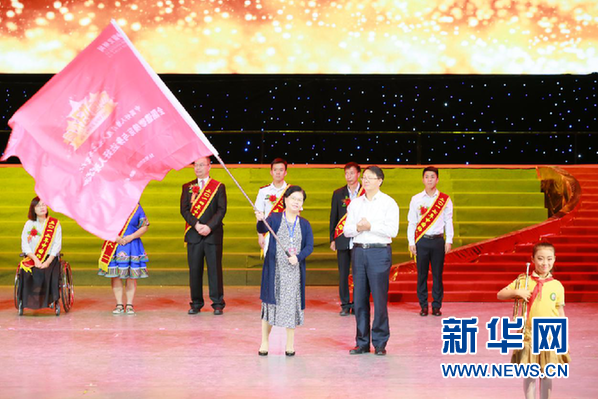 “中國好人榜”主題旗幟交接儀式。新華網 楊喜龍攝