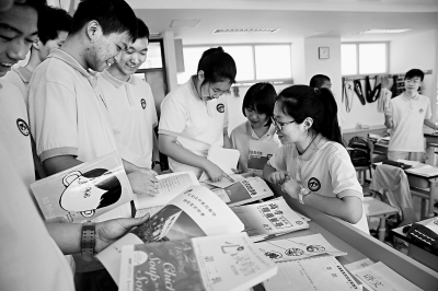 高考臨近,北京市二中高三年級(jí)同學(xué)在完成高三學(xué)年最后一堂課后,將清理出來的多余的復(fù)習(xí)叢書送給了高二年級(jí)的學(xué)弟學(xué)妹們。周良 攝