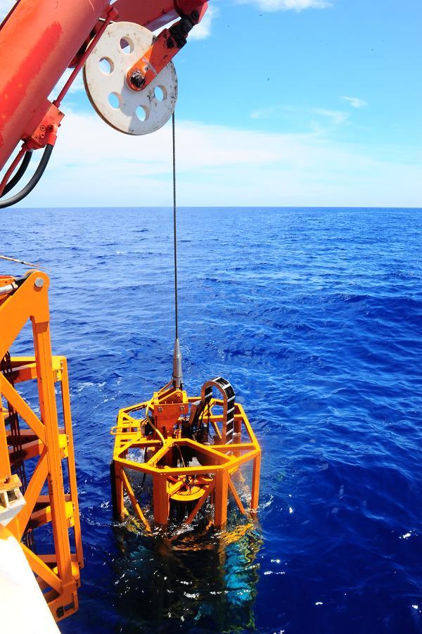 “海斗”號(hào)自主遙控水下機(jī)器人在西太平洋進(jìn)行下潛實(shí)驗(yàn)(2016年7月18日攝)。新華社發(fā)(沈陽(yáng)自動(dòng)化所提供)
