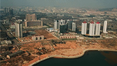 1996年青島還沒有五四廣場(新華社發 張巖攝),到了2018年,五四廣場則被高大時尚的建筑環繞(新華社記者郭緒雷攝)。