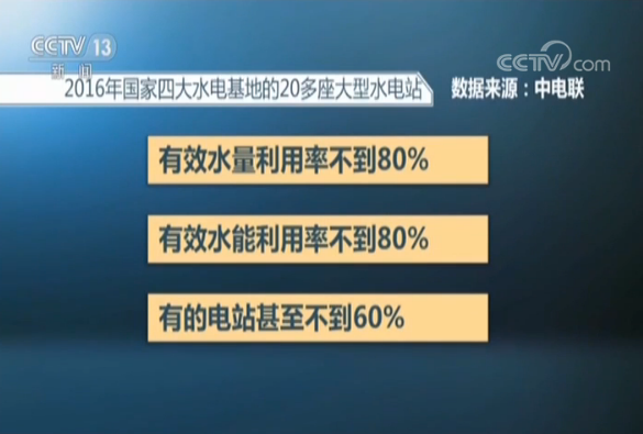 中電聯(lián)給出的數(shù)字,四川省調(diào)峰棄水電量由2013年的76億度,增加至2016年的140億度;云南省2014至2016年裝機(jī)棄水電量分別達(dá)到173億、153億和314億度。2016年國家四大水電基地的20多座大型水電站有效水量利用率、有效水能利用率不到80%,有的電站甚至不到60% 。