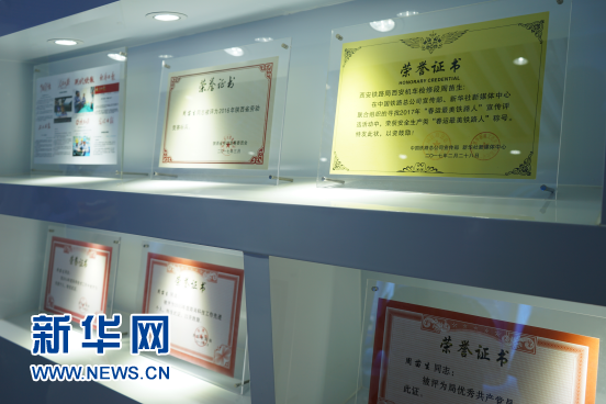 周苗生及團隊獲得的榮譽證書陳列在“周苗生創新工作室”中(6月25日攝)。新華網 王頔攝