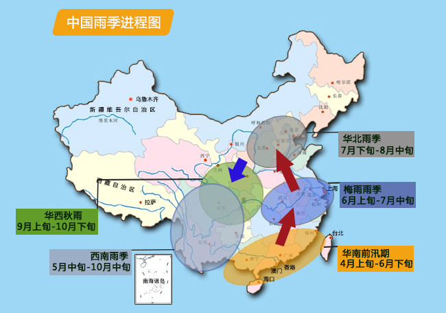 中國雨帶進程示意圖