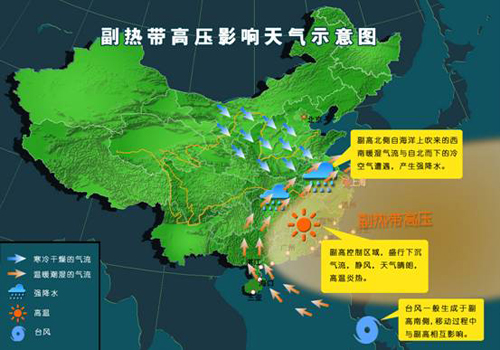 副熱帶高壓影響我國天氣示意圖
