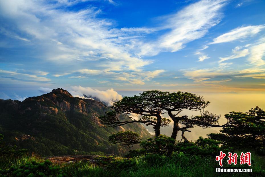 6月29日傍晚,安徽黃山風景區雨后出現云海和晚霞景觀,宛如壯麗畫卷。中新社發 方立華 攝