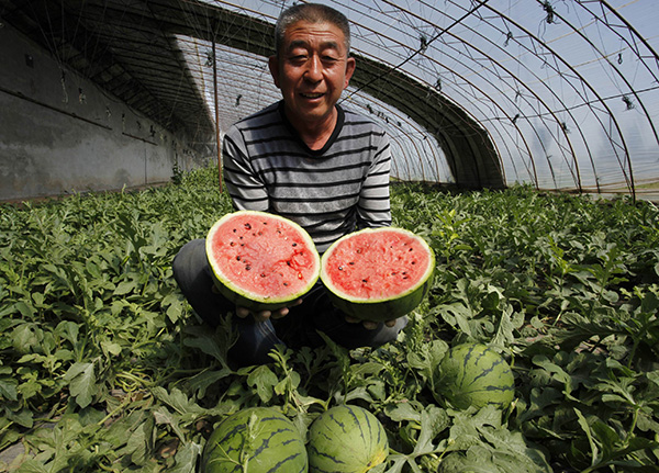 他發(fā)現(xiàn)大棚西瓜近年來(lái)市場(chǎng)行情不錯(cuò)